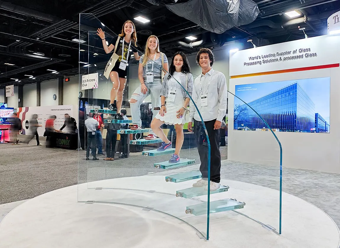 同期举办的AIA 24博览会上,乐鱼官方网页版股份带来了全钢化玻璃楼梯、3D多曲“泡泡玻璃”钢化玻璃、“彩虹”桌、“豹纹”茶几、“万花筒”茶几,同时还有“乐鱼官方网页版之花”3D多曲镜面钢化玻璃,吸引了众多“大”、“小”观众前来打卡、合影留念。