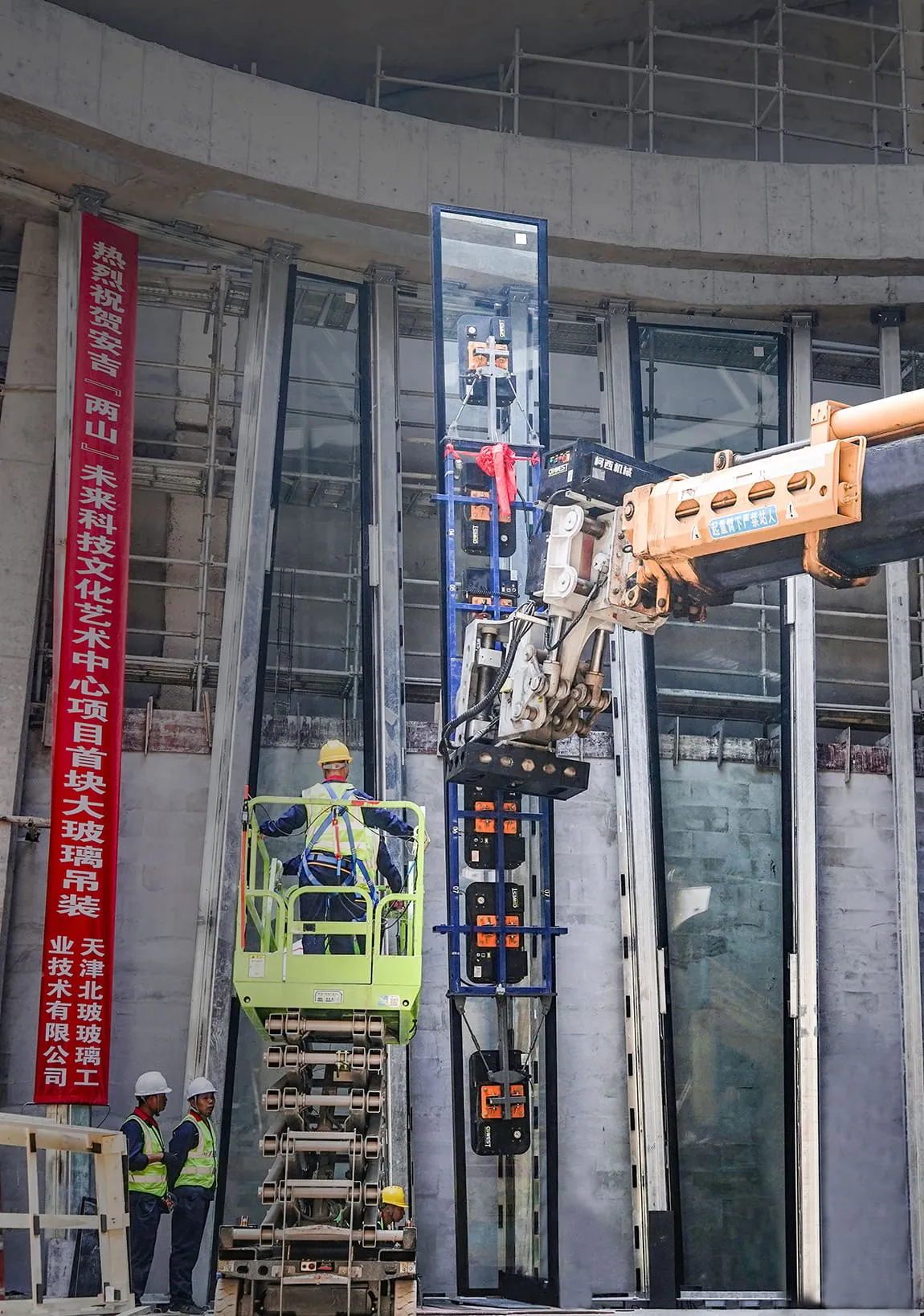 首块乐鱼官方网页版超级玻璃完成吊装——安吉“两山”科技城迎来重要里程碑