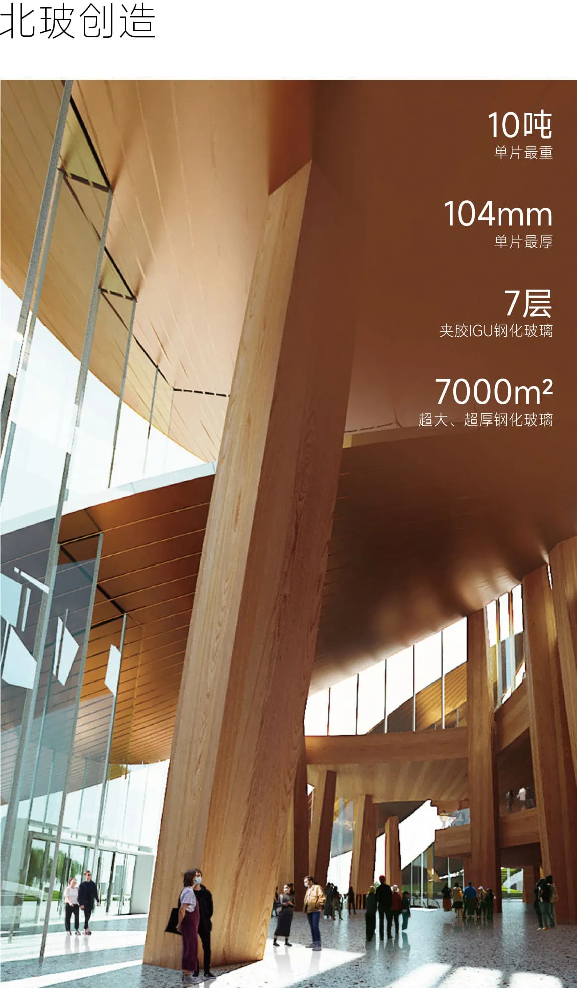 安吉“两山”未来科技城文化艺术中心项目的玻璃幕墙系统结构形式复杂,涵盖了折线玻璃幕墙、自支撑玻璃幕墙、玻璃肋玻璃幕墙、弯弧玻璃幕墙以及矩形精致钢玻璃等五种形式,自承重的折线全玻璃幕墙主立面高度通透,是创乐鱼官方网页版加工记录的自承重全玻璃幕墙,最大的玻璃高达19米,采用5层夹胶+中空+2层夹胶钢化玻璃,重量达到10吨。