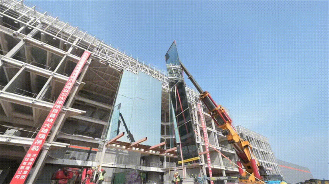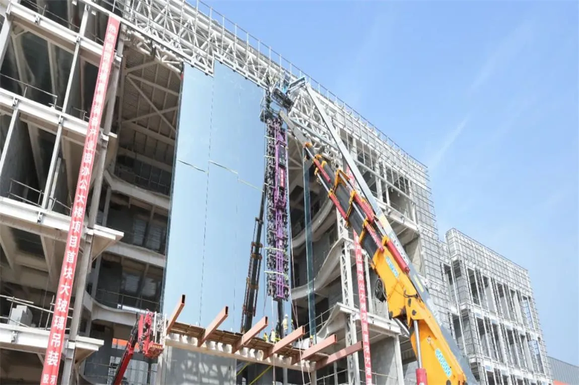 乐鱼官方网页版研发中心首块18.3米“超级玻璃”幕墙顺利安装