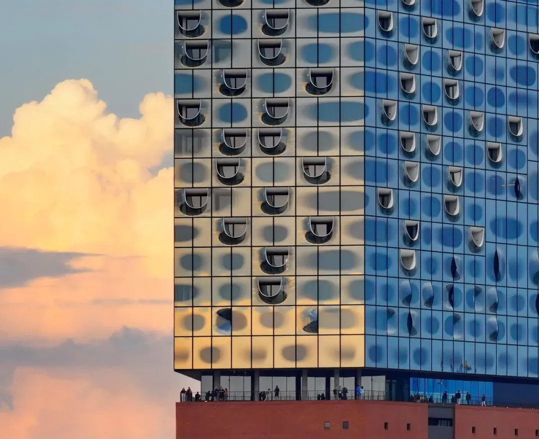 作品介绍:坐落在码头入海口的易北音乐厅,屋顶曲线隐喻巨型风帆,模拟水波纹的玻璃映射出天空与大海。初夏傍晚在落日余晖和天光云影辉映下,音乐厅展现出柔和微妙的光影,我奔赴多个拍摄地点,从不同角度记录下建筑动人的影像。