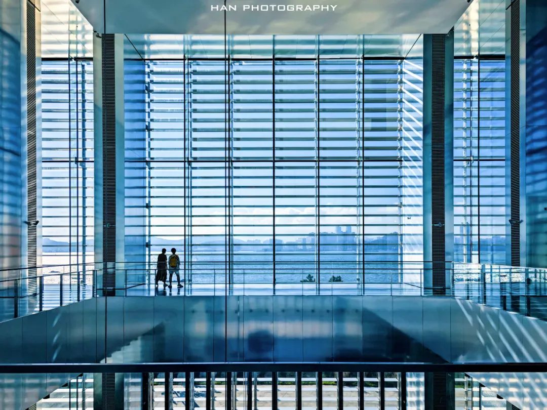 作品介绍:此建筑是位于山东青岛的TAG·西海美术馆,美术馆沿海岸线生长,站在展厅里透过玻璃能望向深蓝大海。面朝大海,春暖花开。