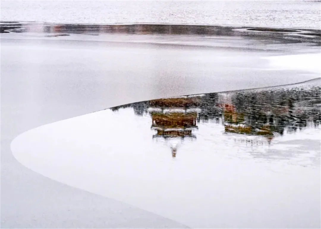 作品介绍:下雪后的颐和园佛香阁,结冰的湖面,没结冰的水面,倒映出梦幻的影子。