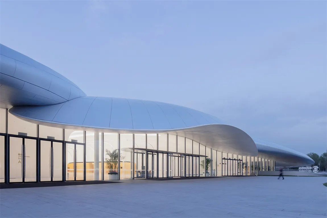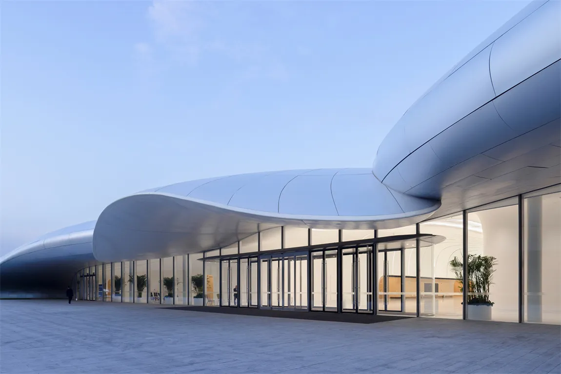 乐鱼官方网页版为项目提供的玻璃融入了创新结构设计,项目采用曲率不同的双曲蜂窝铝板覆盖屋顶,形成了极具视觉冲击力的银白色百叶,美观且具实用功能。