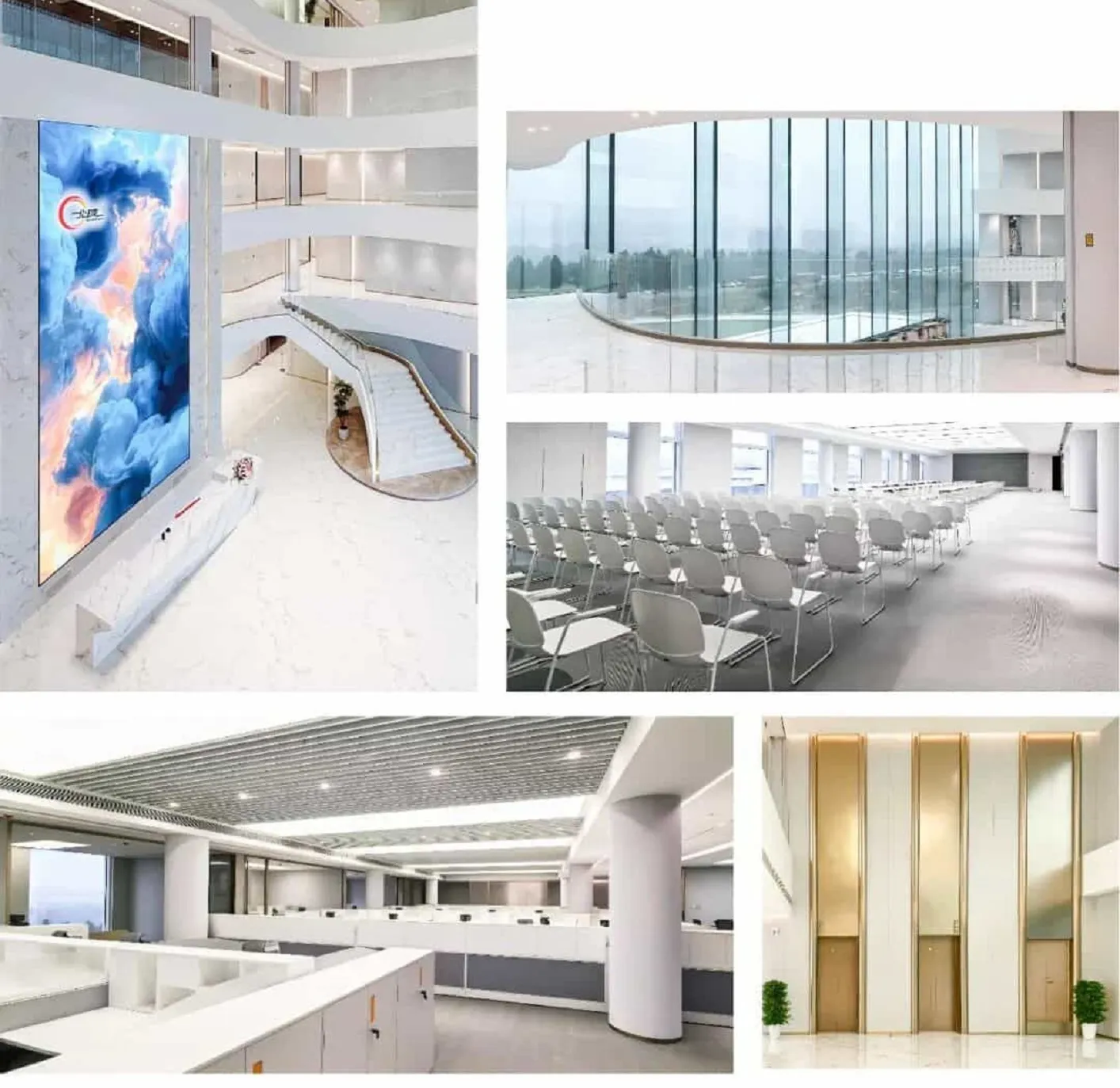步入办公楼,24米挑高的恢宏大厅瞬间映入眼帘,巨大的瀑布屏与涵盖各基地的沙盘模型,生动诠释了乐鱼官方网页版的产业版图与发展雄心。贯穿五层的办公空间以极简通透为设计理念,整体内装选用纯白色为主基调,搭配香槟金色装饰细节,于现代简约中透露出优雅格调。连接办公区与生产车间的“空中光廊”采用乐鱼官方网页版自研减反玻璃,集通透视野与尖端科技于一身。延伸至7万平方米的核心生产车间,宏大的规模与清晰的功能布局——从原料、机加工、装配到发货区——完整呈现出现代化制造实力。