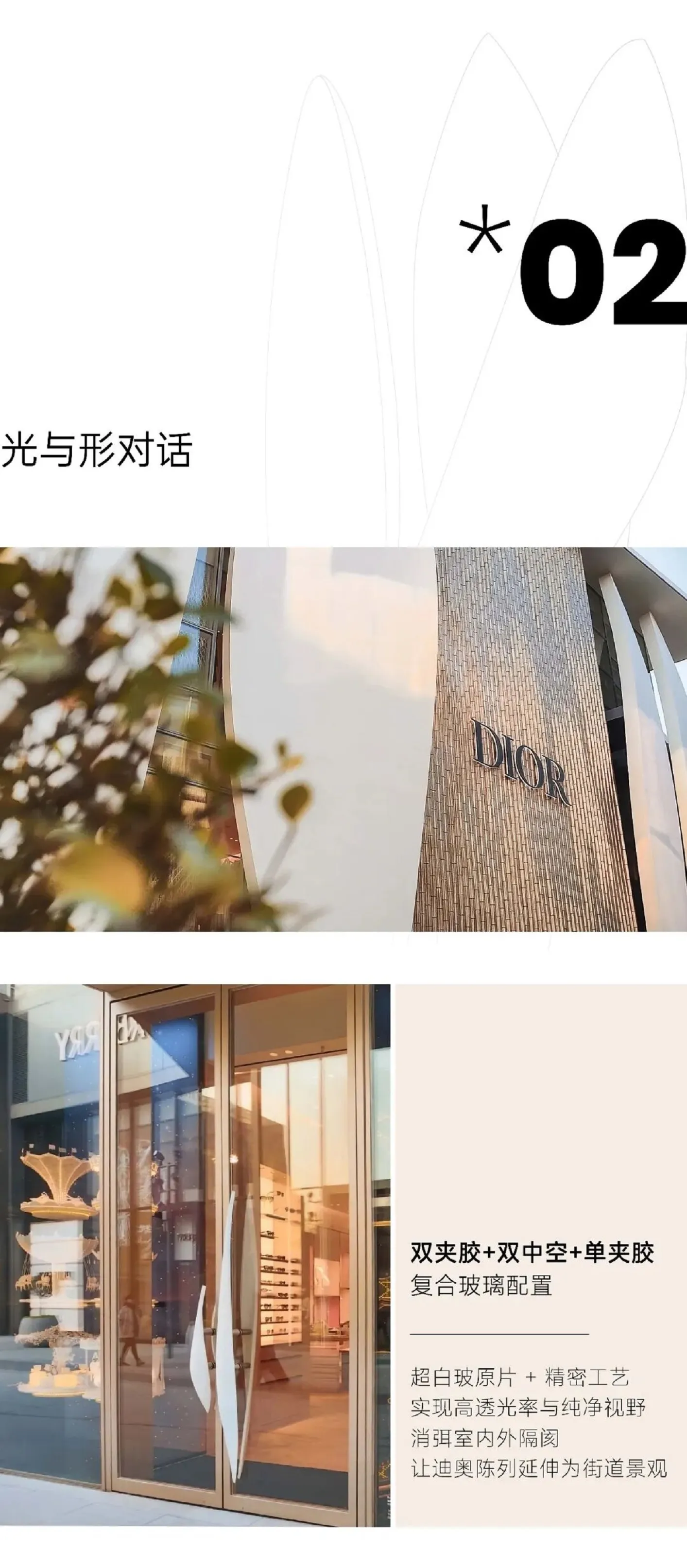 乐鱼官方网页版玻璃拥有极高的透光率与纯净视野,消除了室内外空间的物理隔阂,让迪奥的陈列成为街道景观的延伸。卓越的透光性,使得夜晚室内光线得以均匀柔和地向外漫射,协同“花瓣”造型,共同塑造出建筑如“灯笼”般温润发光的梦幻效果。