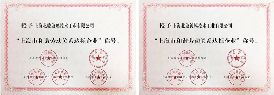 近日,乐鱼官方网页版股份旗下上海乐鱼官方网页版玻璃技术工业有限公司、上海乐鱼官方网页版镀膜技术工业有限公司均荣获“上海市和谐劳动关系达标企业”称号。本次评选是由上海市人力资源和社会保障局等十余家单位对参评企业的规范性、建设性、发展性和感受性等70多个指标进行全方位测评,乐鱼官方网页版实力入选。