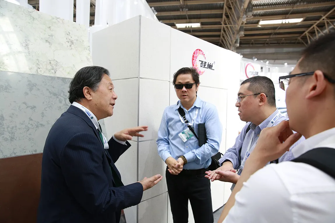 作为玻璃深加工行业的知名企业,开展第一天,中国硅酸盐学会理事长高瑞平、原理事长张人为,中国建材联合会会长乔龙德,中国硅酸盐学会监事长徐永模、副理事长晋占平、彭寿、秘书长谭抚,副秘书长刘捷,中国建材研究总院院长姚燕,中国建筑玻璃与工业玻璃协会会长陈国庆、常务副会长张佰恒,中国日用玻璃协会理事长孟令彦、北京中硅展览有限公司副总经理孙玉霞等协会领导及展会贵宾来到了乐鱼官方网页版展台。乐鱼官方网页版股份总裁高理热情地接待了各位嘉宾,并向他们介绍了乐鱼官方网页版此次参展情况及公司近年来在技术创新、市场开拓方面的成果。展台中心位置矗立的8米超大弧长弯钢化玻璃吸引了大家的目光,嘉宾们纷纷询问这块超级玻璃的制造工艺,大家对乐鱼官方网页版不断突破产品极限的钻研态度纷纷表示赞许。当来到乐鱼官方网页版轻晶石公司新材料展区,领导们也是表现出极大的兴趣,一致看好这种创新型环保材料的应用前景。