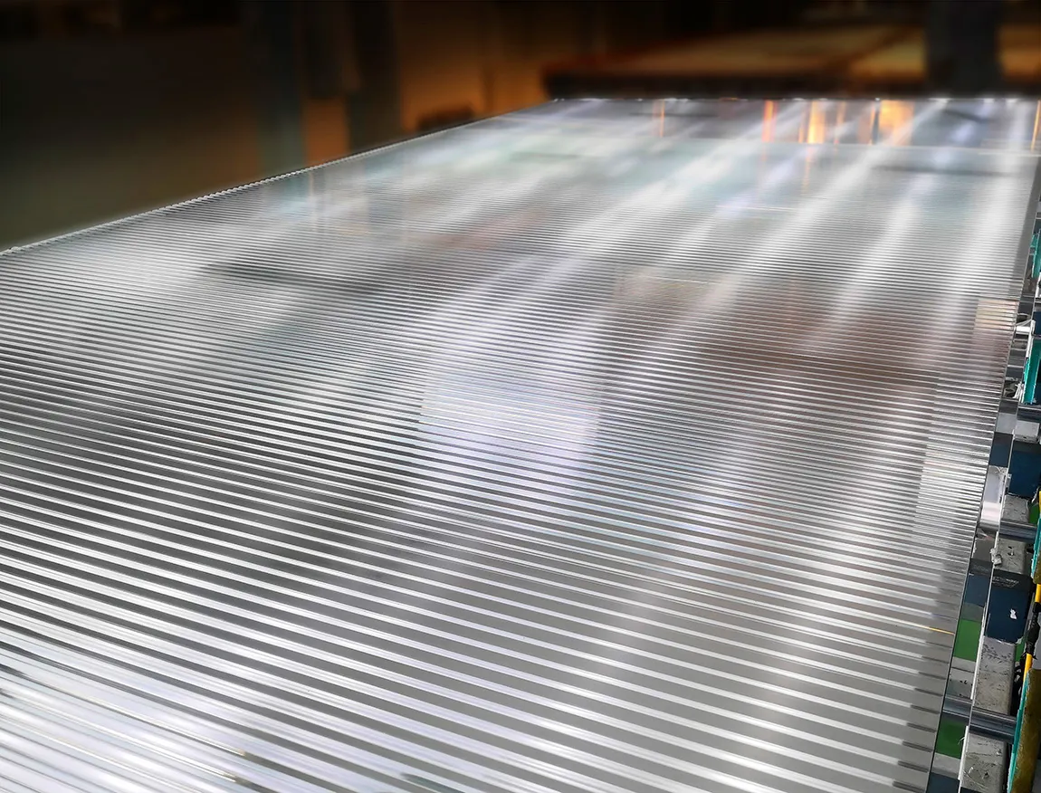 由于该项目的棱镜玻璃为大板面玻璃超宽槽,且为异形,刻槽过程难度大,加工过程不易控制。为了完美地呈现建筑的设计效果,乐鱼官方网页版对刻槽工艺进行创新与研究,解决了超宽刻槽的抛光和刻槽后因应力释放造成的弓形弯曲问题,通过工艺研究和实践测试,使得棱镜玻璃通透光亮,玻璃棱镜效果完美呈现。