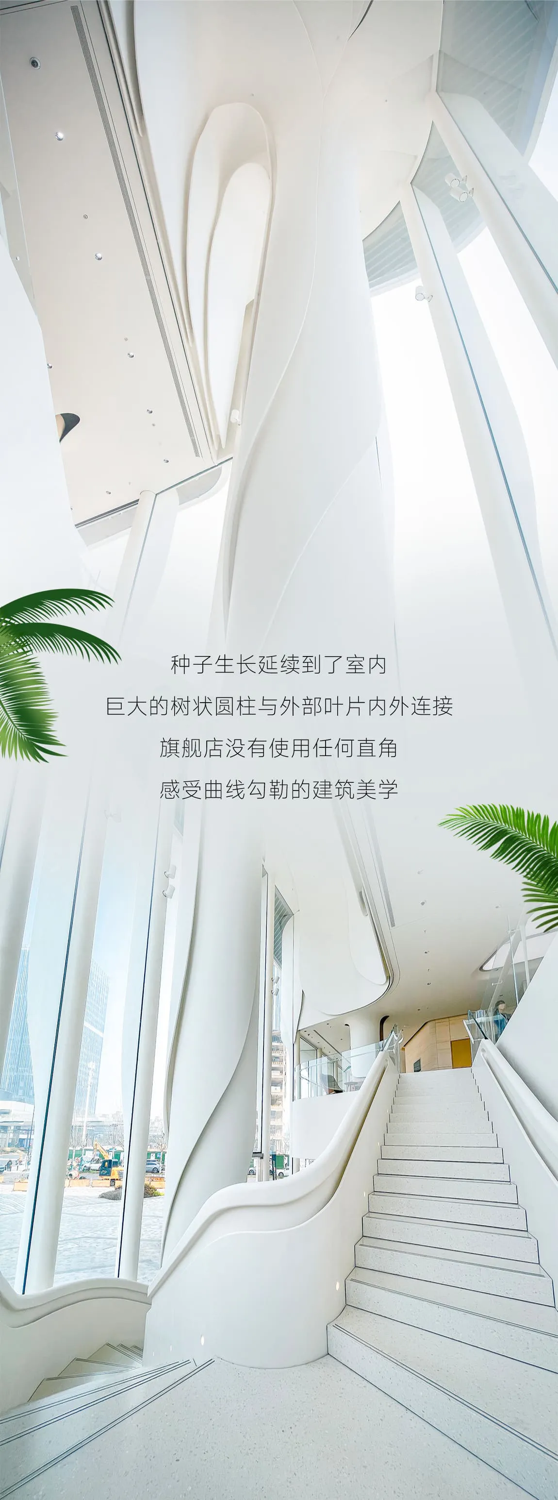 设计师巧妙地将自然的肌理与现代建筑融为一体,如同树木从种子开始,逐渐成长、展翅向上。这座旗舰店的外观设计生动地诠释了这种演变过程。