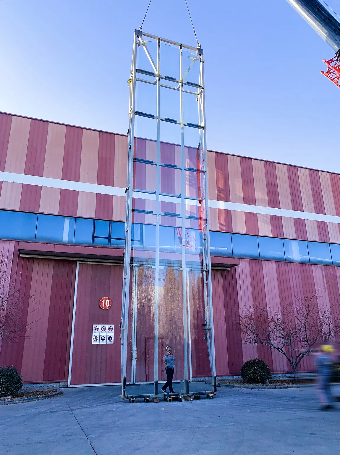 “一期”玻璃幕墙由22块面板和18片玻璃肋组成,安装后让大堂空间通透又大气恢弘。三面玻璃墙体,拐角为直角玻璃45度斜边拼接,视野无死角。项目的完工不仅仅是刷新了玻璃尺寸的纪录,还带动了运输、安装等相关行业的技术发展,引领了潮流,使超大玻璃在建筑上的普遍使用成为可能。
